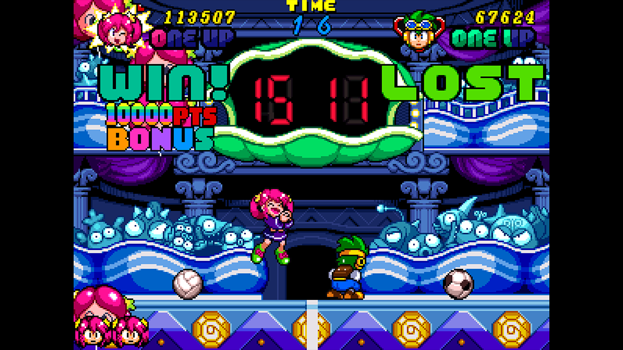 Clockwork Aquario is a particularly vibrant game. Cheerful, bright colors as far as the eye can see, colourful enemies and even more colourful stages; it’s the visual equivalent of a candy shop. Taking full advantage of the stylized art style and extremely well made pixel art, it's clear that the visuals were given high priority throughout development. In 1992, Clockwork Aquario was meant to push the arcade hardware to its limits and it absolutely shows as the visuals, even while nowhere near realistic, still hold up today. One look at any individual frame of the game will immediately let the players know what the game is all about: a fun, fast paced, vibrant and light-hearted adventure with a cast of both characters and enemies that are full of life.
