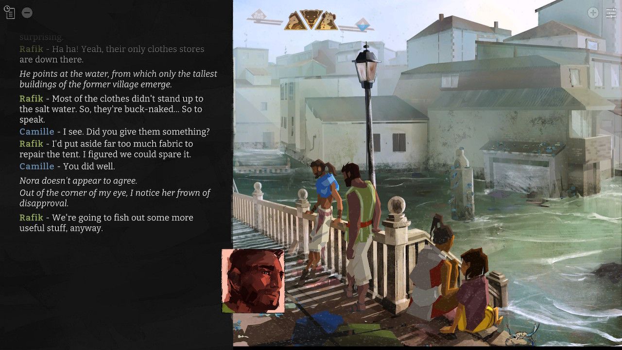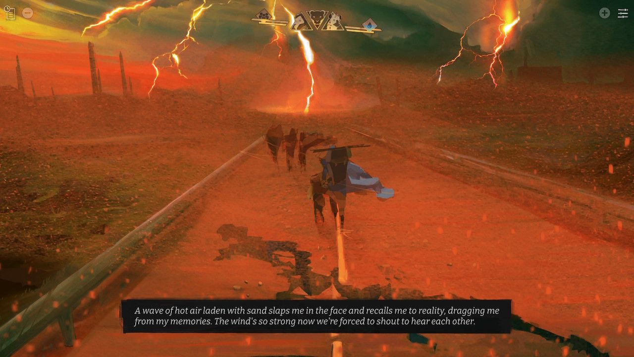 The narrative is told from the perspectives of members from a Sahara Desert tribe. Catastrophic heat and sandstorms have rendered your home uninhabitable, so you’re forced to travel to find somewhere safer to live. You’re a climate migrant. Mostly, I wanted to review this game to show video game naysayers – especially those who think that gaming is just mindless entertainment for “lazy people” – that this medium can and does explore a diverse range of important topics.
