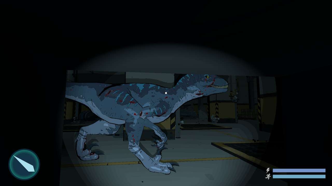 After a brief introduction, you find yourself on board an aeroplane flying over Isa Nublar with the sole purpose of finding Blue - The Raptor from the Jurassic Park Fallen Kingdom genome. After an encounter with a few unruly pteranodons, your plane crashes into a hangar and your pilot is eaten alive, at which point the game turns into an almost Alien: Isolation-like survival game after your main predators, three very aggressive velociraptors, start hunting you.