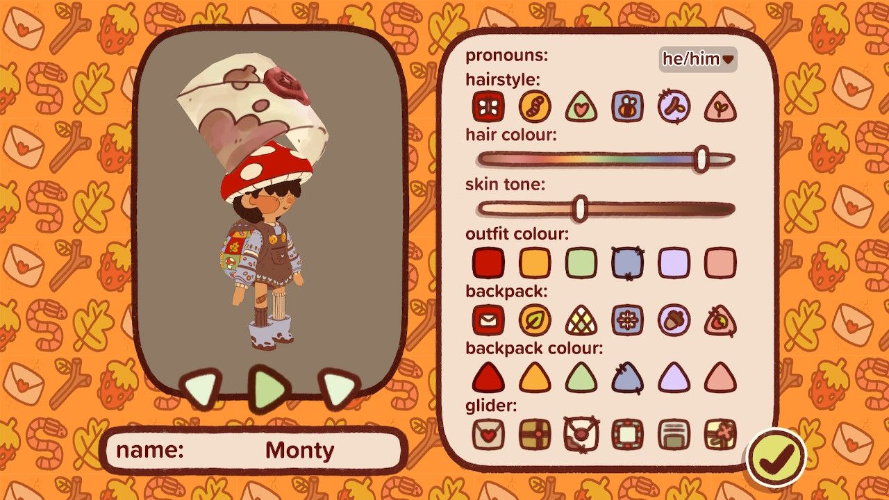The whimsical Mail Time allows you to customise your character’s features, clothing, bag, and glider. The game’s pastel colour palette is pleasing and the character designs are cute, such as the character portraits that depict expressive emotions. Actually, the main aspect that piqued my interest in the game is its lovely illustrative style, reminding me of Animal Restaurant, an adorable phone game where you play as cats running a restaurant for various animal patrons.