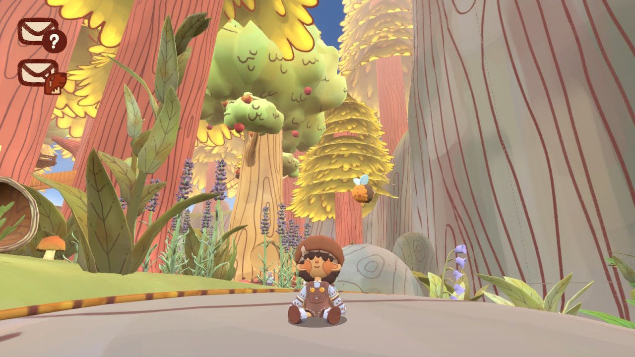 However, unlike the 2D Animal Restaurant, Mail Time is a 3D platforming experience, offering a charming forest to run, jump, and glide around in with your bee companion. As it's your first day as a Mail Scout, the game’s minimalistic plot – which can be completed in two hours – focuses on fulfilling the relaxing requests of the assorted forest dwellers. These are primarily fetch quests, where you’ll locate and collect items to deliver to each creature (but, like in Detective Pikachu Returns, you receive no real reward for finishing those requests, other than scout badges).