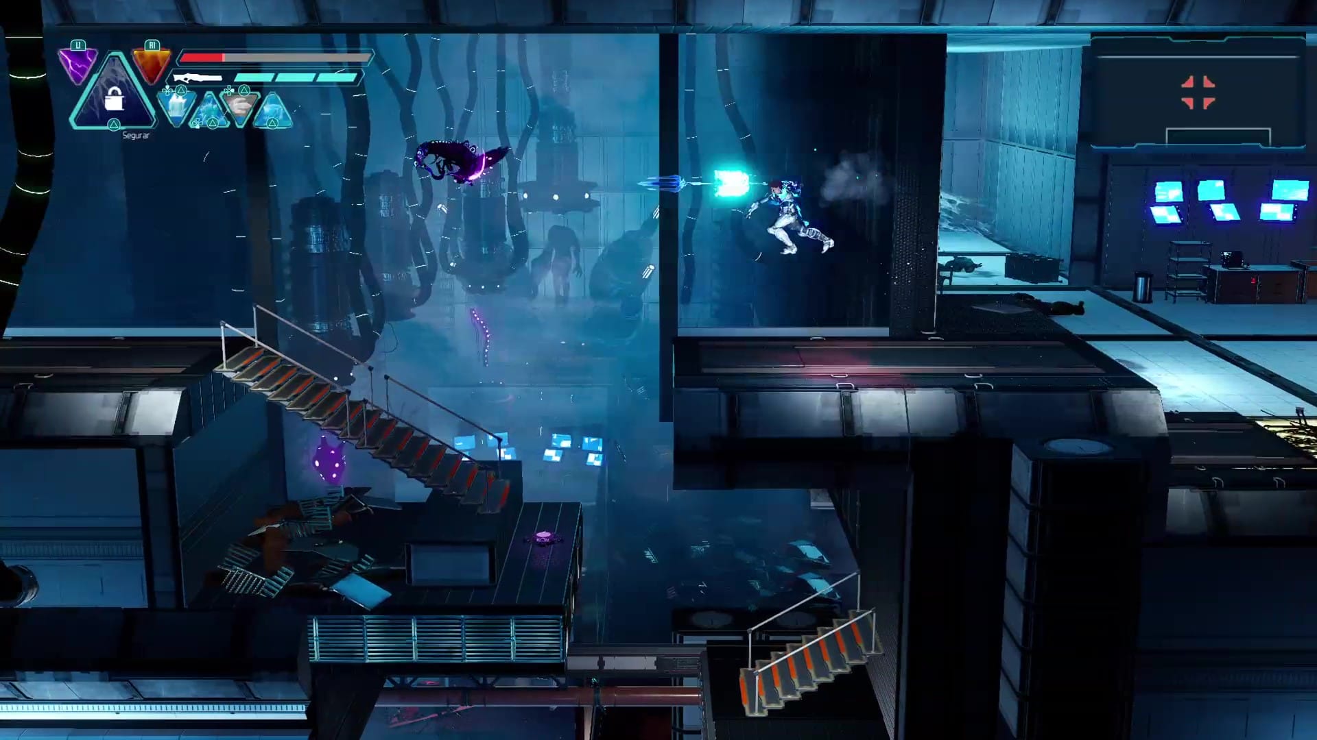 Lastly, as you’d expect from a game inspired by the Metroid series, the sound track is on-point, and you have those little background bloops and bleeps you get in Super Metroid, but over an ambient soundtrack that cranks up the suspense. With the enemies scuttling in from various angles and the noises you can hear off screen, it certainly puts you on edge!