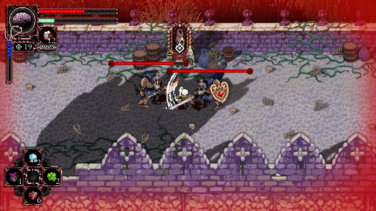 That being said, the story is a captivating, drip-fed wonder. Show don’t tell is a phrase taken to the extreme much like Morbid’s inspirations, with a vague plot that compliments the world and adds value to the enemies, bosses, and environments rather than being the priority. Still, the narrative is there for those who care about why they’re hacking and slashing, rather than just getting down into the nitty gritty and cutting through the hordes. You play as Striver of Dibrom, a warrior whose entire purpose in life is slaughtering the Gahars. The rest of the puzzle pieces are found in books and documents, which makes it mostly optional for the lore-hungry scavengers out there. It’s a nice change of pace from indies that shove blatant exposition down your throat in not-so-well-engrained storylines.