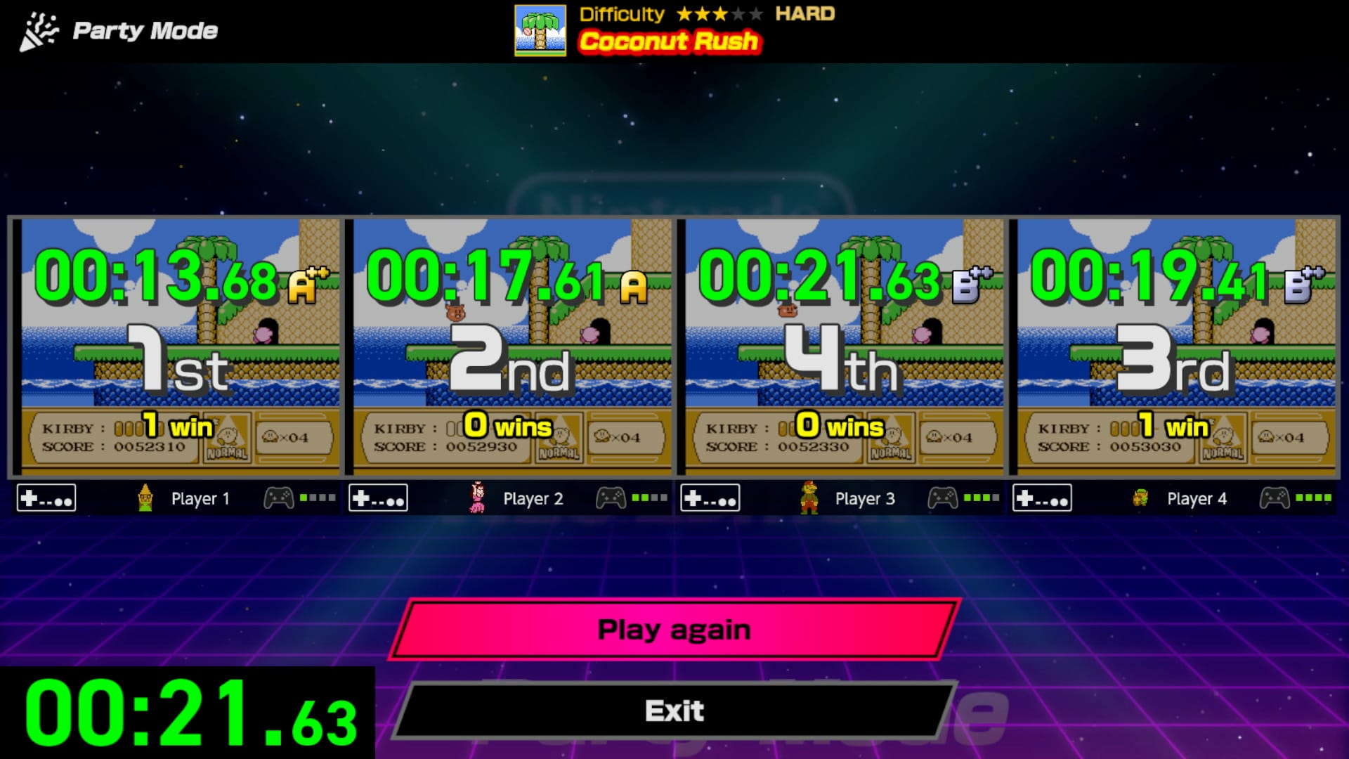The other online mode sees you competing ‘live’ with seven other players - three challenges, only one shot, slowest people eliminated until one person is crowned winner. You can see the other players in split-screen. It would be incredible fun. Except… you’re competing against player’s ghost data - their completion time is predetermined, and you’re really only racing against their times, not actual players. This really took some of the excitement away for me and feels like a poor decision. After all, we’ve seen Nintendo implement the live retro contests in Super Mario 35 and Tetris 99 already, to great reception.