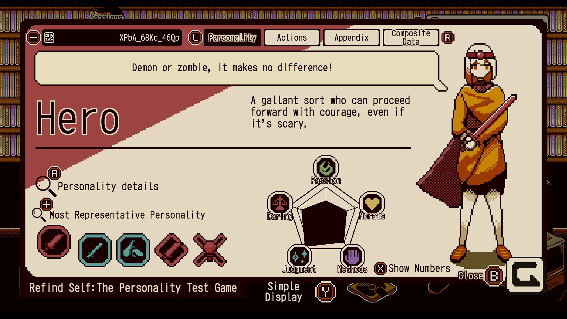 Even though it can be finished in around an hour, it is also extremely replayable. Although I would say that the first one or two runs are the most accurate. Not only can you replay the game to try and get each of the personality types, you also are able to learn more about the overarching story with each subsequent playthrough, which I think is a really compelling way to have the story presented. Through decisions you make and not like how some games do it—by giving you the illusion of choice where both decisions lead to the same end result.