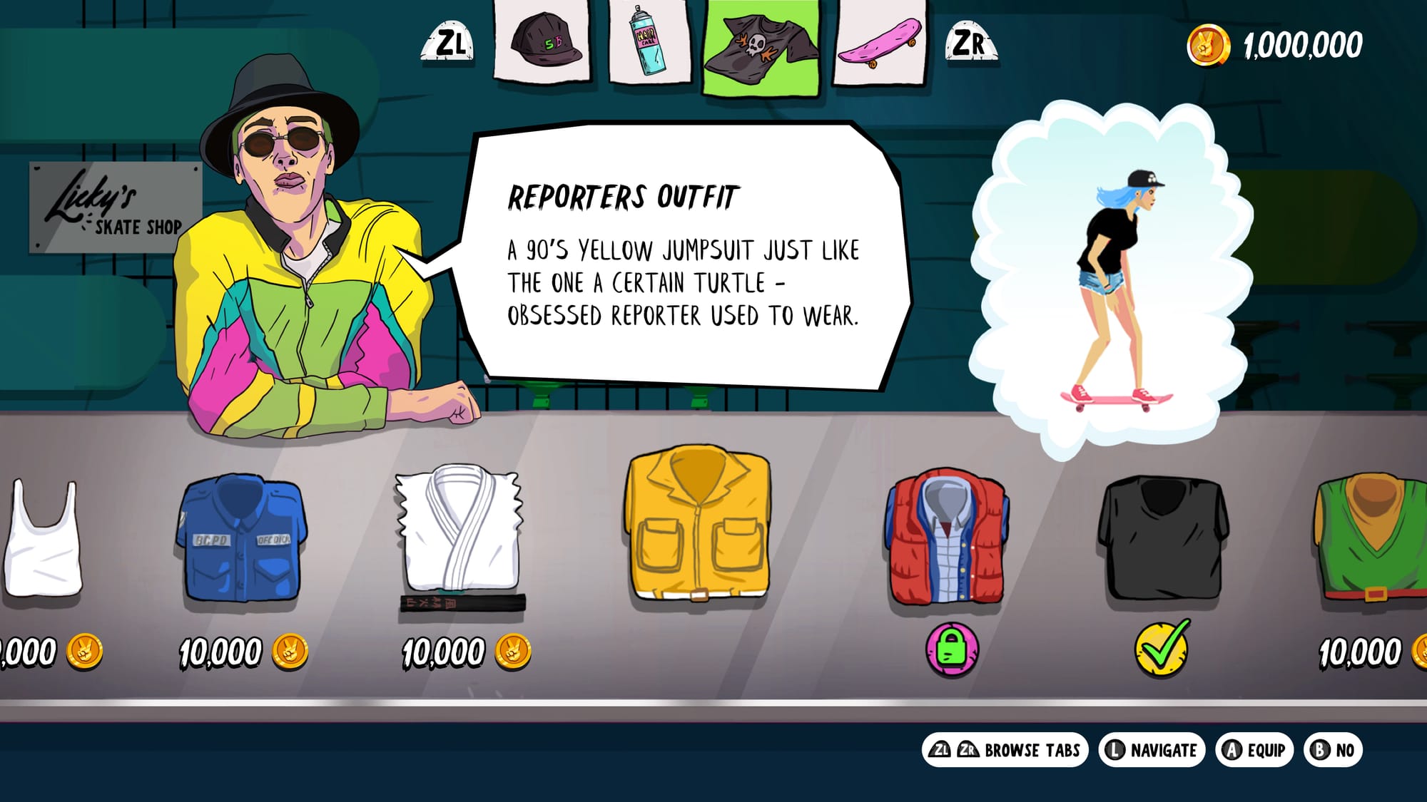 Completing challenges and finding collectables rewards you with money, which you can spend on clothes, outfits and new skateboard designs for the protagonist, Lux. There is an arrangement of different styles you can choose from, letting you customise her look to your heart's content.