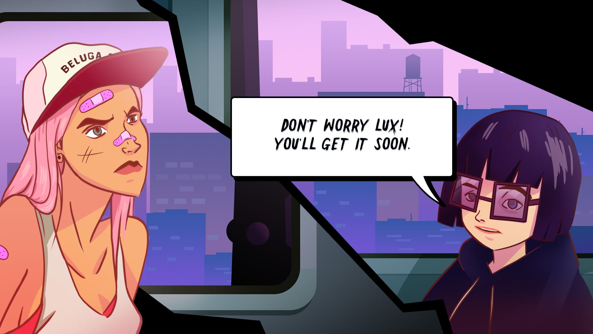 While there aren’t a lot of cutscenes in Skate Bums, what little they do have is fully voice acted. That being said, it is very noticeable that each actor recorded their lines separately, possibly in completely different buildings and recording setups, with little to no voice direction. Most characters are at least fine but the protagonist Lux is very noticeably flat and sounds bored at times.