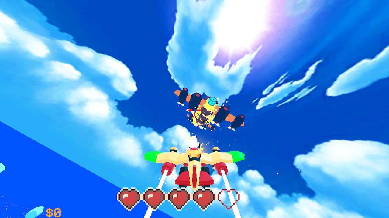 After the fourth island, Skycadia begins to replicate a bullet-hell shooter as the skies are filled with multiple respawn bases and floods of enemies, to a point where the frame rate takes frequent hits. The screen being littered with bullets and enemies to the point where it hinders the player’s ability to take aim causes frequent frustration, where you’ll often need to fly away and hope that the enemies crash into each other just to get a breather.