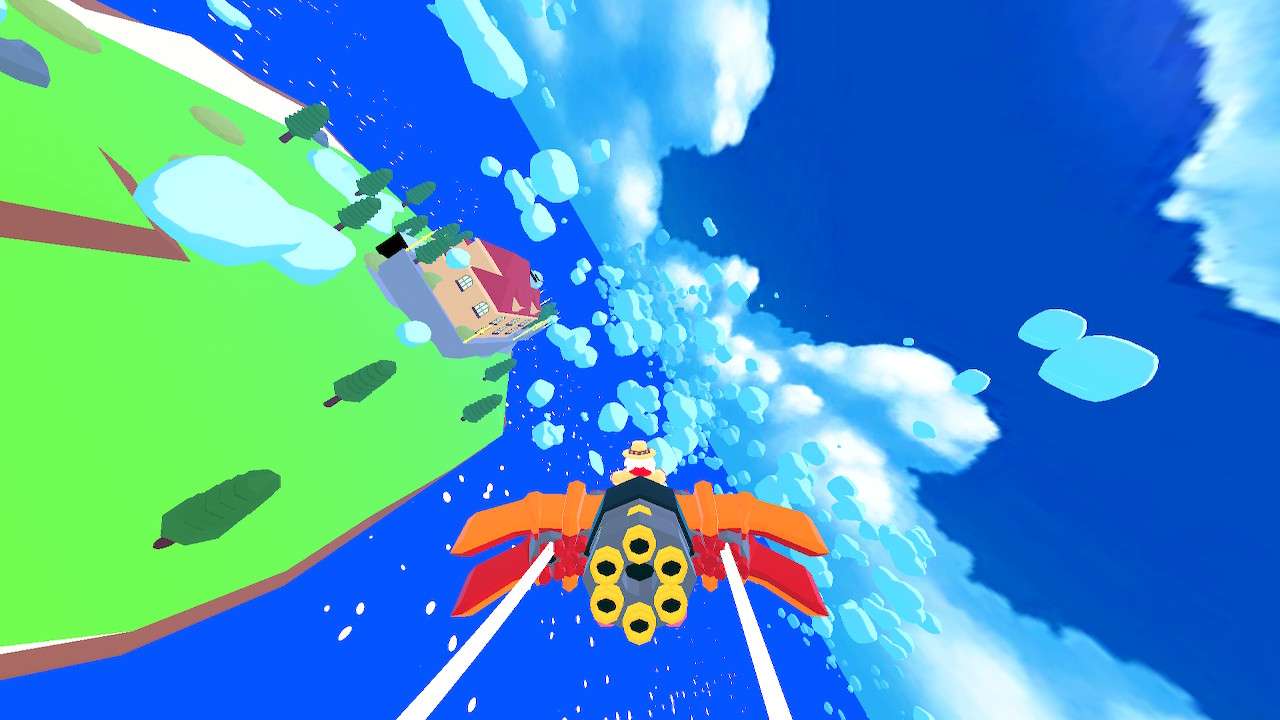 Skycadia's combat is fast-paced and smooth as you fly around different themed areas in either first or third-person view. The primary focus is to shoot enemy bases and engage in dog-fights above the clouds. Enemies come in different varieties, such as floating bases which act like respawn points for a constant flow of enemies, smaller crafts that ram you and medium-sized vessels that fly fairly close and fire their cannons at you.