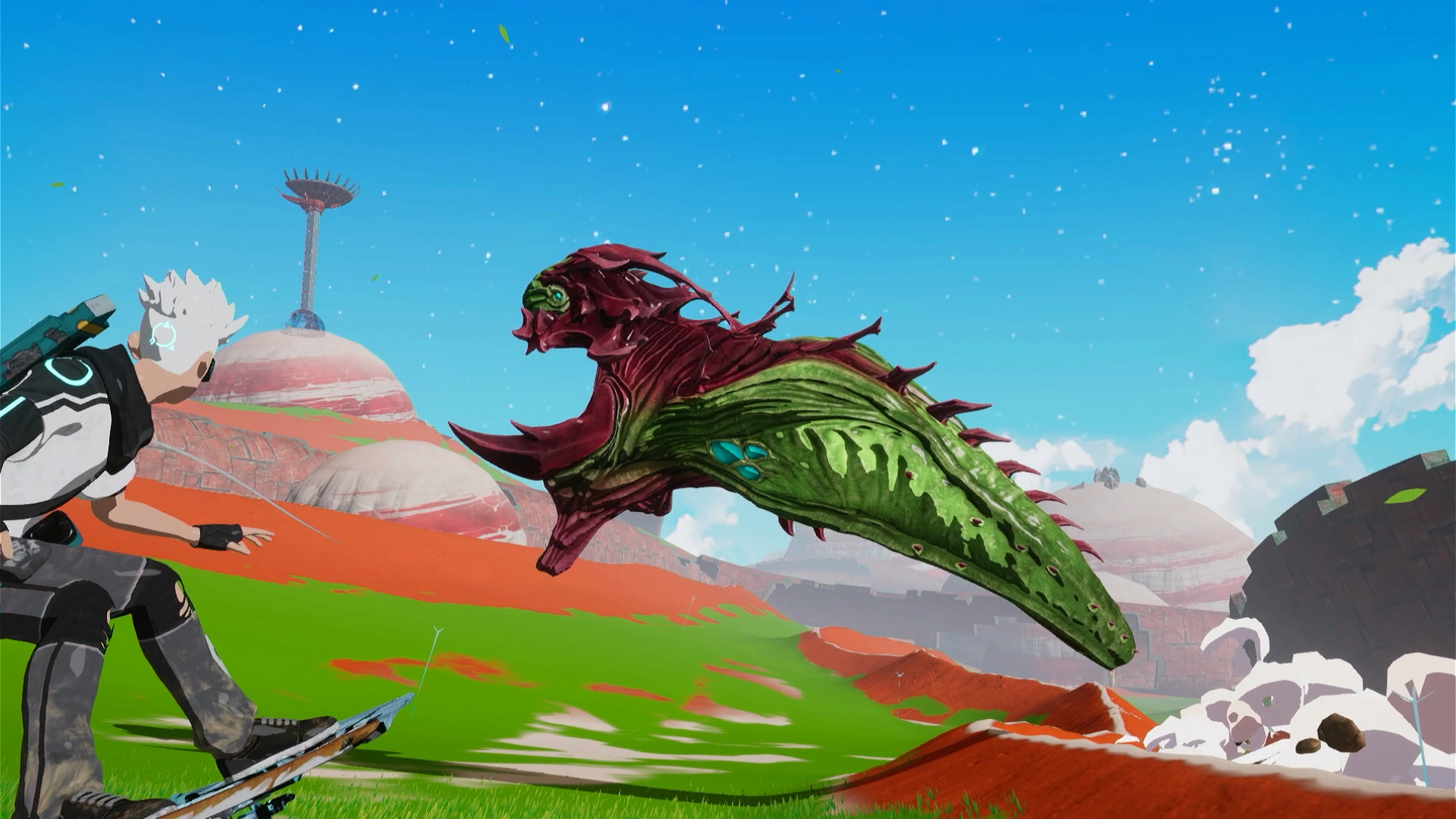 Speaking of the hoverboard, it's really where Star Overdrive’s gameplay shines. The hoverboard is fast but not too fast that you can’t control it; jumping off ramps and doing tricks mid-air give you a boost of speed when you land, like kart racing games tend to do. Just going around and exploring the world is immensely fun because it just kinda happens as a result of messing around, going fast and doing sick tricks.