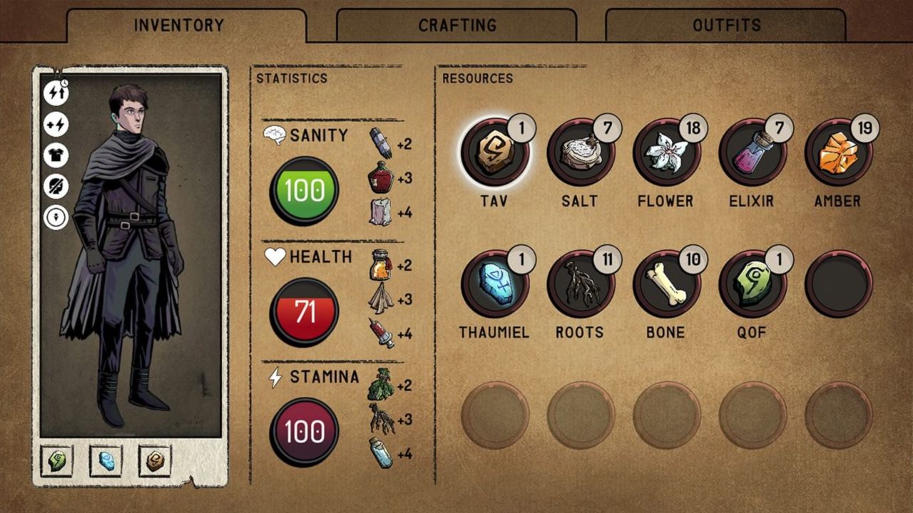A major aspect of Theatre Of Sorrows’ gameplay is crafting and resource management. However, with the vast amount of things you need to craft to progress and the player’s lack of inventory space throughout, it makes searching for items less of a meaningful choice and more of an annoyance.